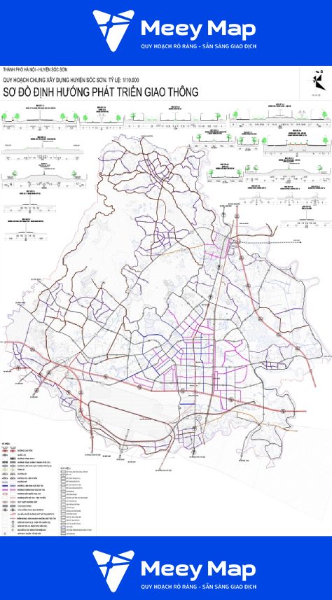 Bản đồ quy hoạch huyện Sóc Sơn, Hà Nội, được thiết kế với tỷ lệ 1:25000, mang đến cái nhìn tổng quan về định hướng phát triển vùng đất này đến năm 2030. Nội dung bản đồ không chỉ phản ánh việc quy hoạch sử dụng đất mà còn chỉ ra các dự án phát triển hạ tầng, nâng cấp giao thông và hình thành các đô thị vệ tinh.