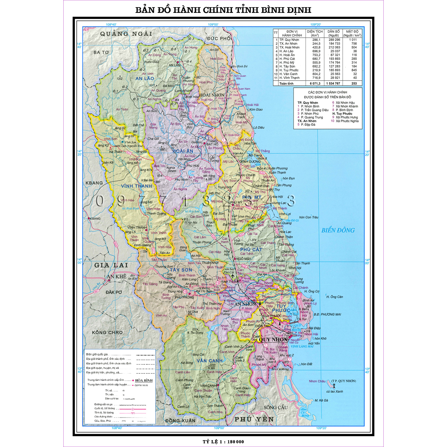 Bản đồ hành chính tỉnh Bình Định là một tài liệu quan trọng, cung cấp cái nhìn tổng thể về địa lý và cấu trúc của khu vực này. Tỉnh Bình Định có diện tích 6.066,2 km², với dân số khoảng 1.486.918 người, là nơi cư ngụ của nhiều cộng đồng sinh sống phong phú. Tỉnh lỵ của Bình Định là thành phố Quy Nhơn, nổi bật với vẻ đẹp tự nhiên và văn hóa đặc sắc.