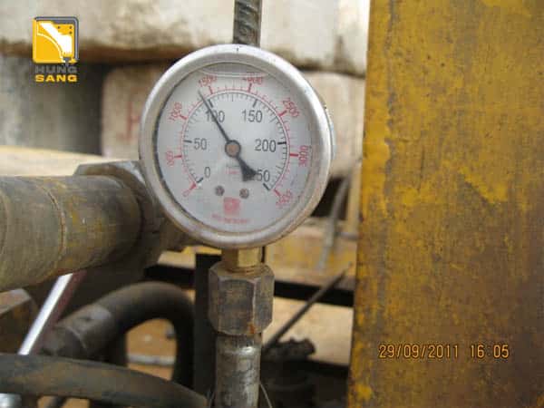 Khi tiến hành ép cọc, đồng hồ áp suất trên máy sẽ hiển thị những thông số cần thiết. Tuy nhiên, để hiểu rõ lực ép thực tế, chúng ta cần tra cứu bảng quy đổi tương ứng. Mỗi loại máy ép cọc đều có bảng quy đổi riêng, và những bảng này thường được cơ quan đăng kiểm xác nhận, đảm bảo độ chính xác và an toàn.