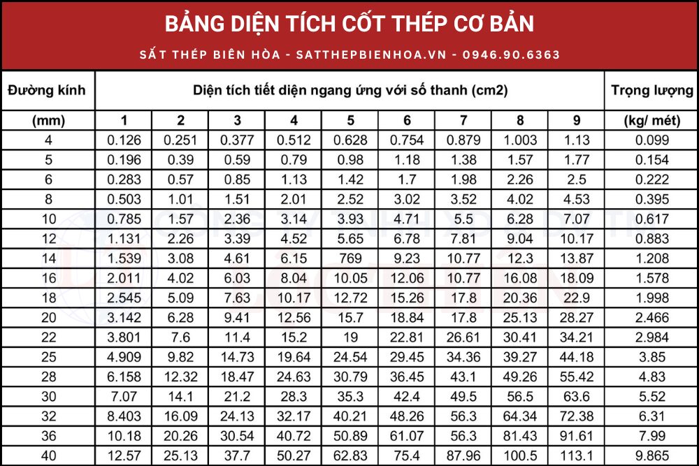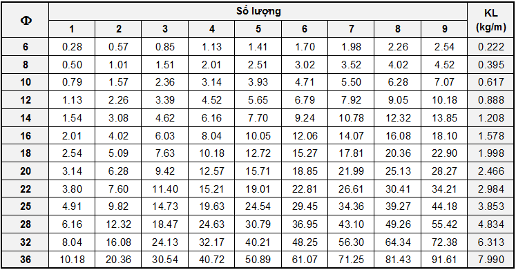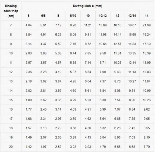 Bảng tra diện tích cốt thép là một công cụ vô cùng hữu ích cho các kỹ sư và nhà thầu trong lĩnh vực xây dựng. Nó cung cấp thông tin chi tiết về đường kính cốt thép và diện tích mặt cắt tương ứng của chúng, giúp người dùng dễ dàng chọn lựa cốt thép phù hợp cho từng công trình. Thực tế, hàm lượng cốt thép lý tưởng trong dầm bê tông thường dao động từ 1,2% đến 1,5%, và tuyệt đối không vượt quá 2%, vì điều này ảnh hưởng đến độ bền và tính ổn định của kết cấu.