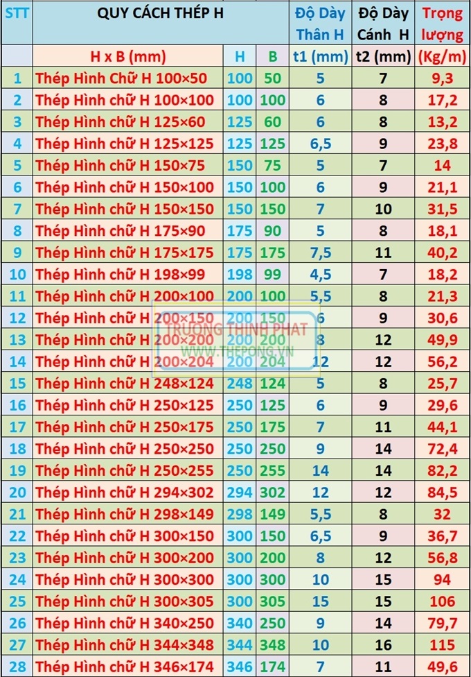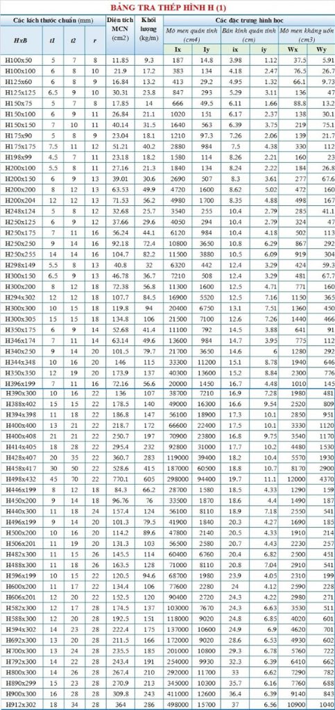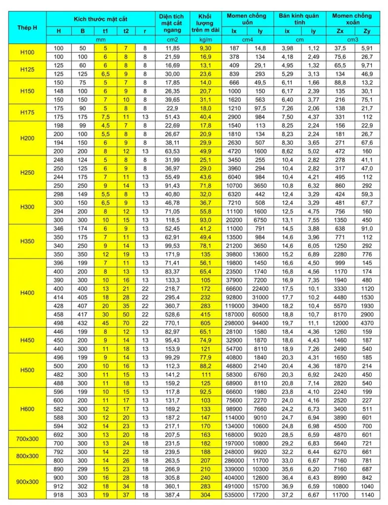 Thép hình chữ H là một trong những vật liệu xây dựng quan trọng, được ứng dụng rộng rãi trong ngành công nghiệp và xây dựng nhờ kết cấu vững chắc, khả năng chịu lực cao. Để lựa chọn và sử dụng loại thép này đúng cách, việc hiểu rõ về bảng tra, kích thước, trọng lượng cũng như các tiêu chuẩn liên quan là điều rất cần thiết. Bài viết dưới đây sẽ cung cấp cho bạn những thông tin chi tiết về thép hình chữ H, bao gồm bảng tra, thông số kỹ thuật, ứng dụng thực tế, đặc điểm nổi bật và các phân loại thường gặp giúp bạn dễ dàng lựa chọn sản phẩm phù hợp nhất.