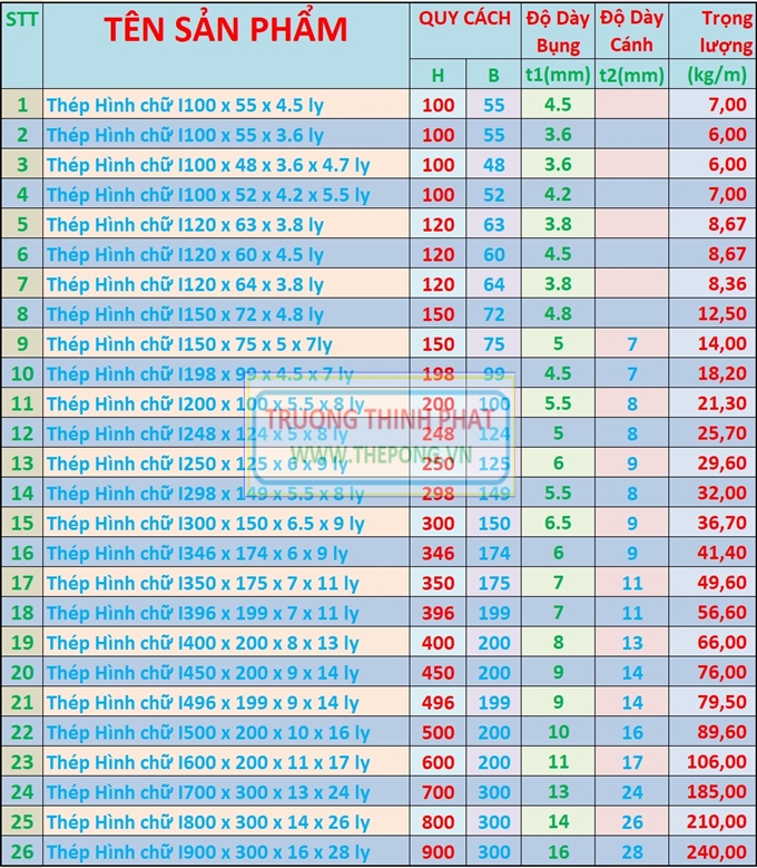 Đặc biệt, bảng báo giá thép hình I mới nhấ năm 2025 cũng được cập nhật liên tục, giúp người dùng nắm bắt nhanh chóng giá thị trường. Nhờ bảng quy cách và trọng lượng cùng báo giá chi tiết, bạn có thể lựa chọn sản phẩm một cách hiệu quả và tiết kiệm nhất.