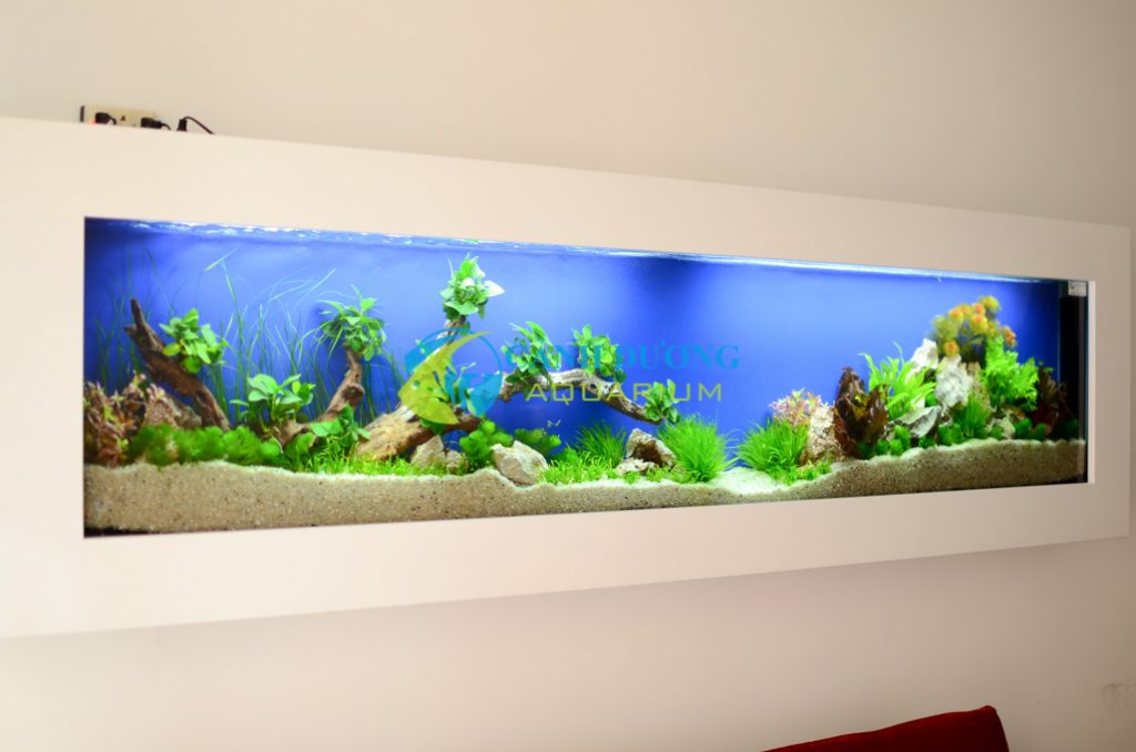 Kích thước bể khá nhỏ gọn, phù hợp cho những không gian hạn chế, đồng thời chiều sâu chỉ từ 15-30 cm giúp bể trở thành giải pháp lý tưởng cho những ai yêu thích sự tinh tế. Để lắp đặt bể cá âm tường, cần đảm bảo hốc tường có độ dày tối thiểu 0,15m nhằm đảm bảo an toàn và tính thẩm mỹ.