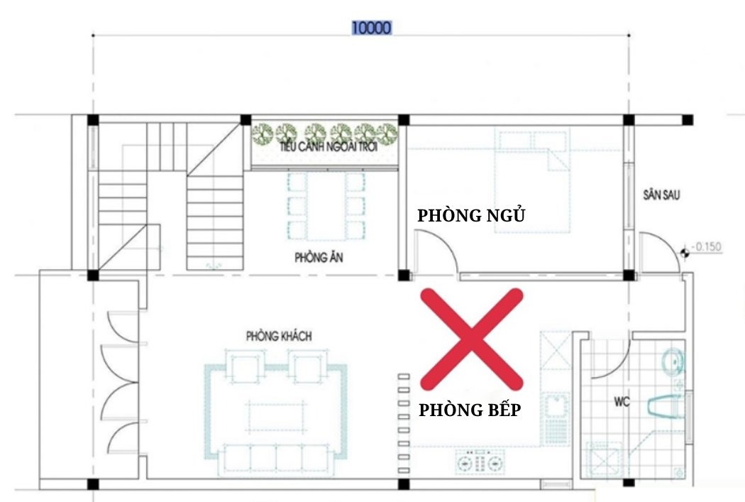 Thực tế, việc này không chỉ tạo ra cảm giác ngột ngạt cho những người cư ngụ trong phòng ngủ, mà còn làm họ căng thẳng, dễ nổi nóng. Hơn nữa, khi đứng nấu ăn, gia chủ sẽ gặp khó khăn trong việc quan sát xung quanh, từ đó hạn chế tầm nhìn và gây ra sự bất an.