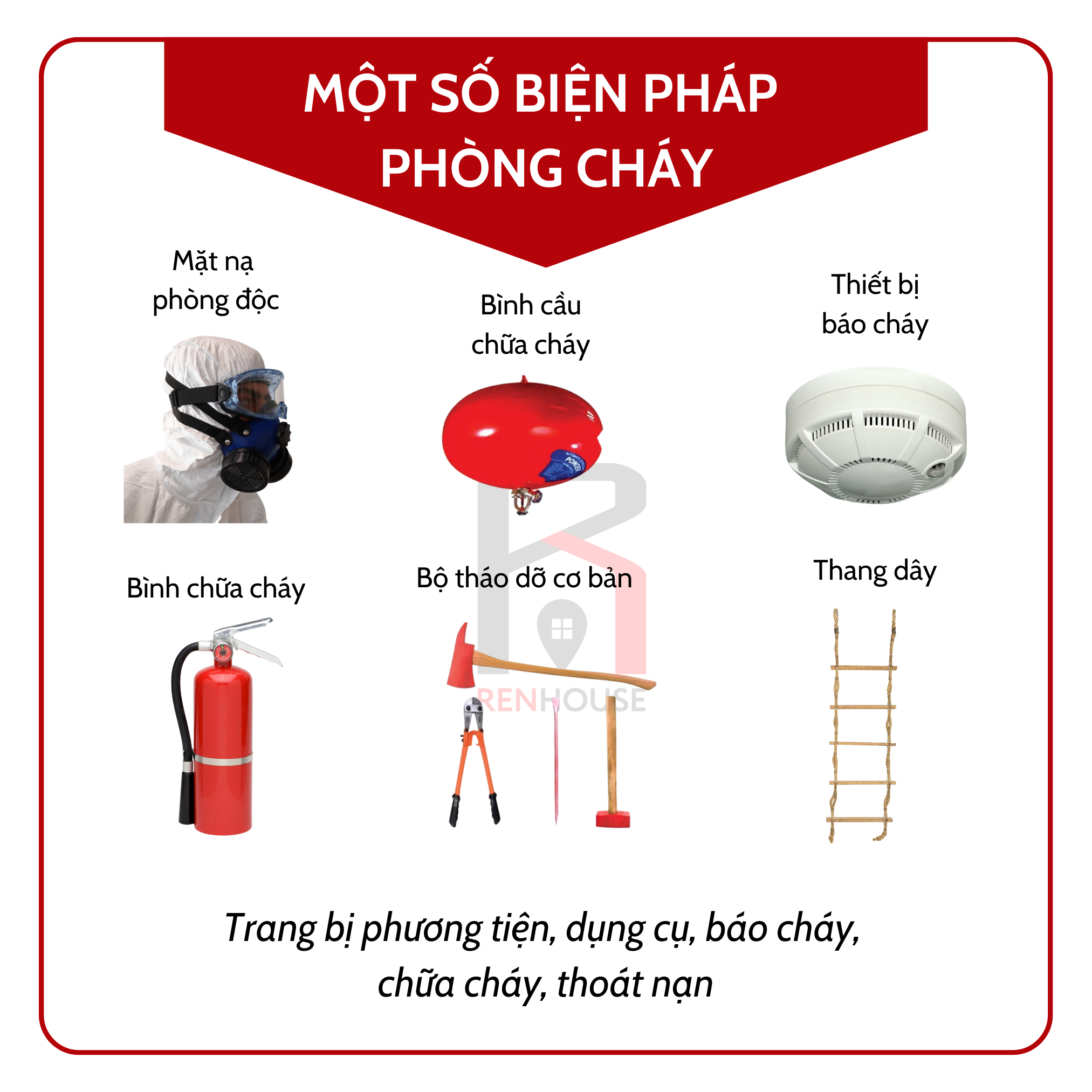 Ngoài ra, chúng ta cần chuẩn bị sẵn sàng các phương tiện chữa cháy như bình chữa cháy, cát hoặc nước để dập lửa. Nếu lửa lan rộng, việc gọi điện đến lực lượng cứu hỏa là rất cần thiết. Hơn nữa, mọi gia đình nên có lối thoát nạn an toàn, phòng lánh nạn tạm thời và các giải pháp ngăn lửa, chống tụ khói để đảm bảo mọi người có thể thoát hiểm an toàn.