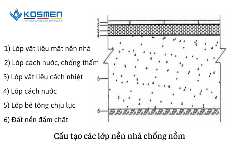 Chống ẩm cho nền nhà là một vấn đề quan trọng, đặc biệt vào những ngày thời tiết nồm ẩm. Một trong những phương pháp hiệu quả là tạo một lớp đệm không khí khoảng 20mm dưới sàn nhà. Lớp đệm này không chỉ hạn chế khả năng truyền nhiệt lạnh mà còn giúp giảm độ ẩm từ mặt đất.