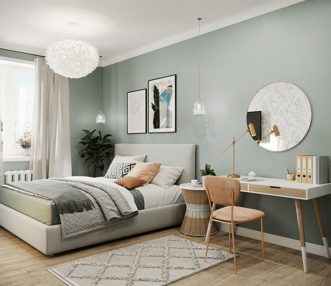 Khi bạn muốn tạo một không gian phòng ngủ nhỏ với gam màu pastel, điều quan trọng là lựa chọn những món đồ có thiết kế tinh tế như tranh nghệ thuật và gương treo tường. Sự kết hợp hài hòa giữa các tông màu pastel sẽ giúp không gian trở nên nhẹ nhàng và thư giãn. Chẳng hạn, nếu bạn chọn hồng pastel, hãy kết hợp với các màu trung tính như trắng và be để tăng thêm sự gần gũi.