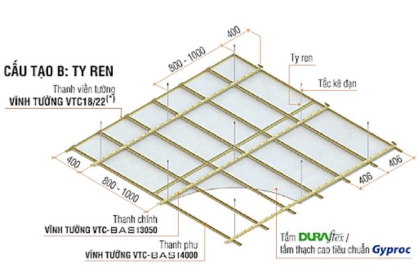 Cách tính khung xương dầm thạch cao lắp trần thả