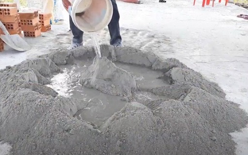 Để đảm bảo độ đặc và loãng của vữa, bạn nên sử dụng một xô chứa nước. Thông thường, khoảng 3 lít nước cho mỗi lần trộn là phù hợp. Khi trộn, hãy đổ từ từ xi măng vào nước, thi thoảng khuấy đều để có được hỗn hợp đồng nhất.