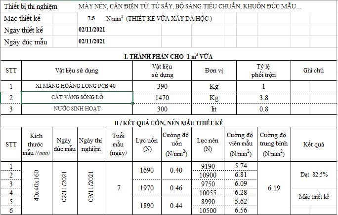 Báo giá cấp phối vữa trát mác 75 chi tiết