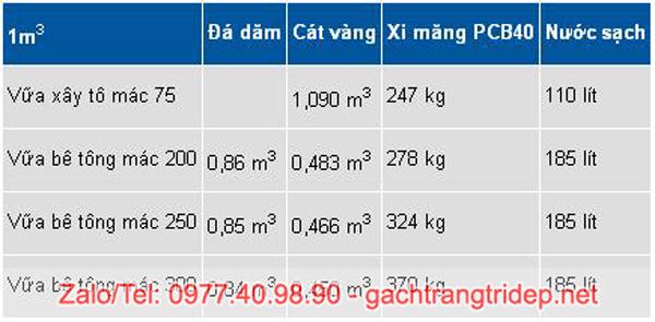 Định Mức Cấp Phối Vữa Trát Mác 75