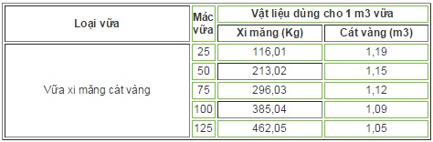 Định mức cấp phối vữa trát mác 75 cho công trình