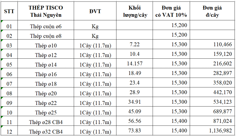Giá Thép Xây Dựng Tisco Hôm Nay
