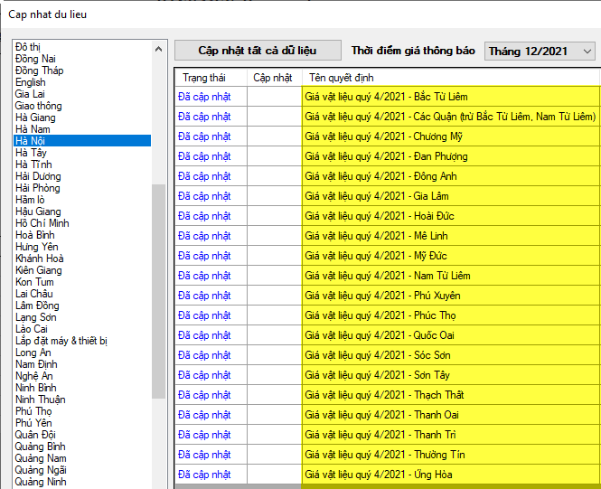Chỉ tính riêng trong năm 2024, số lượng kết quả tra cứu liên quan lên tới 6,999, cho thấy sự phong phú của dữ liệu. Các công bố cũng không chỉ giới hạn ở Hà Nội mà còn bao gồm nhiều tỉnh thành khác như Đắk Lắk, Thanh Hóa và Ninh Bình, từ đó tạo ra bức tranh toàn diện hơn về biến động giá cả vật liệu xây dựng.