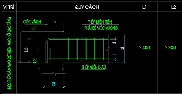 Tiêu Chuẩn Chiều Dài Neo Thép Cột Vào Đài Móng