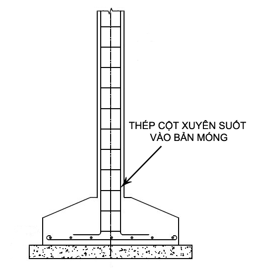 Neo thép cột nối dài vào đài móng vững chắc