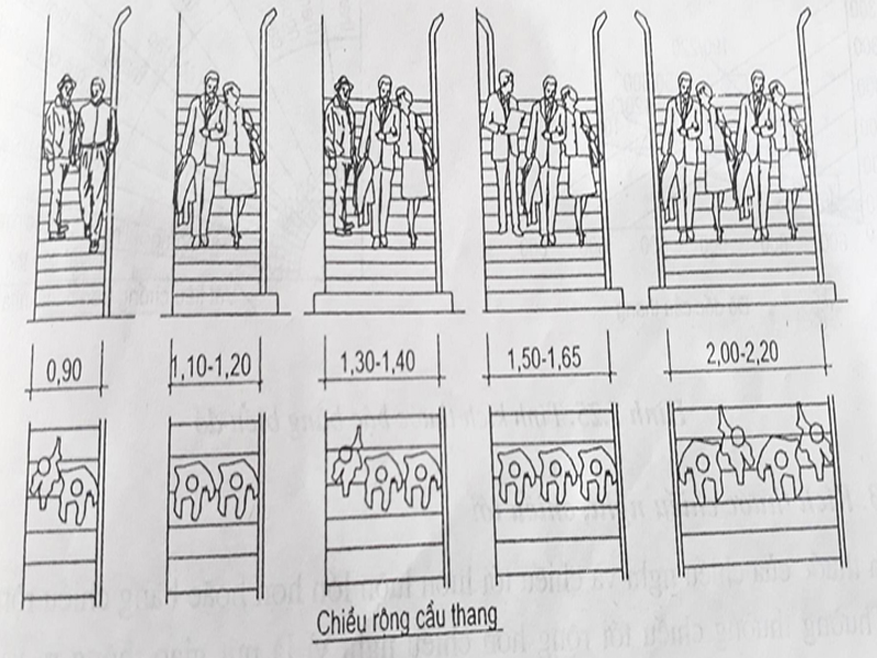 * Kích thước cầu thang đảm bảo an toàn và thoải mái di chuyển