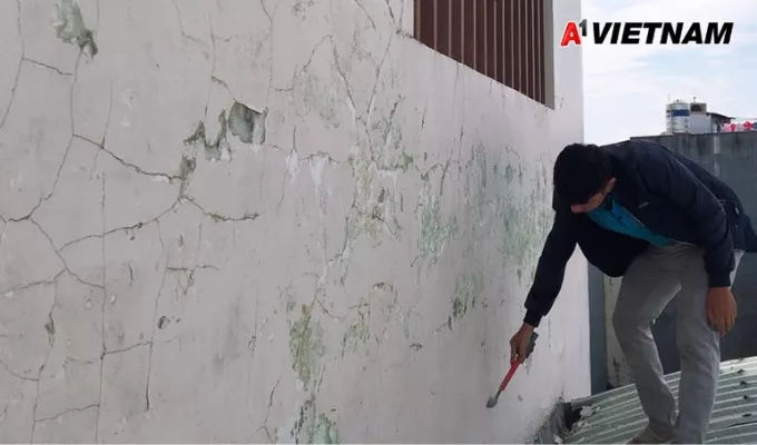 Sau khi làm sạch, hãy kiểm tra và xử lý các vết nứt, khe co giãn, cũng như các điểm thấm nước. Những vết nứt lớn cần được trám lại bằng hồ và vật liệu chống thấm phù hợp để đảm bảo chúng không trở thành kẻ thù của tường nhà bạn.
