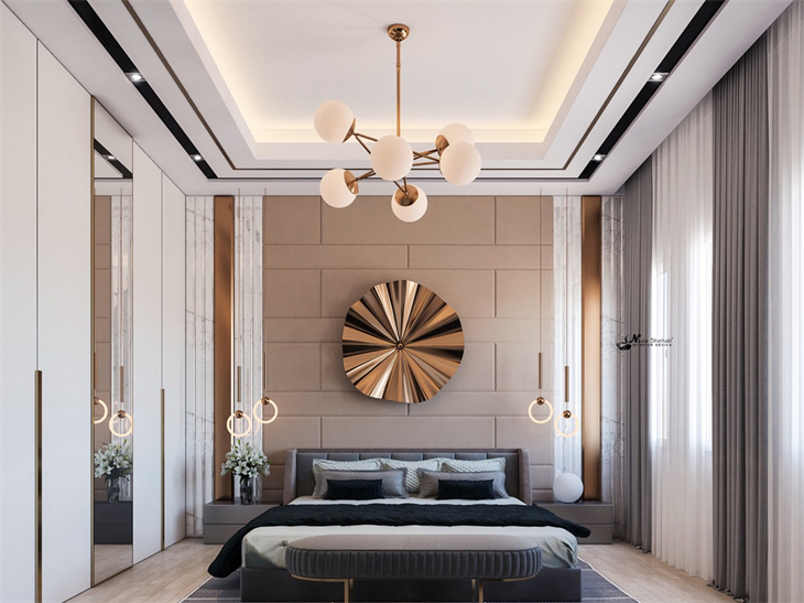 Khi chọn mẫu trần cho phòng ngủ, hãy cân nhắc phong cách nội thất: phòng hiện đại, màu đơn giản thì nên chọn trần nhẹ nhàng, đường nét tối giản. Họa tiết quá cầu kỳ hoặc đường cong rườm rà sẽ làm mất hài hòa. Nếu có dầm cắt ngang giường, nên đóng trần để đảm bảo thẩm mỹ và an toàn.