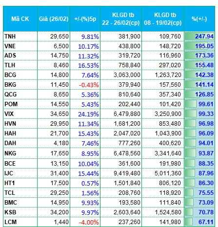 Các cổ phiếu tiêu biểu như Công ty Cổ phần Xây dựng số 5 (SC5) và Công ty Cổ phần Đầu tư Phát triển Công nghiệp và Vận tải (TCD) đều cho thấy sự biến động tích cực. Trong thời gian qua, thị trường ghi nhận những chuyển biến khả quan nhờ vào tăng cường đầu tư công và dự báo lợi nhuận khả quan trong thời gian tới.