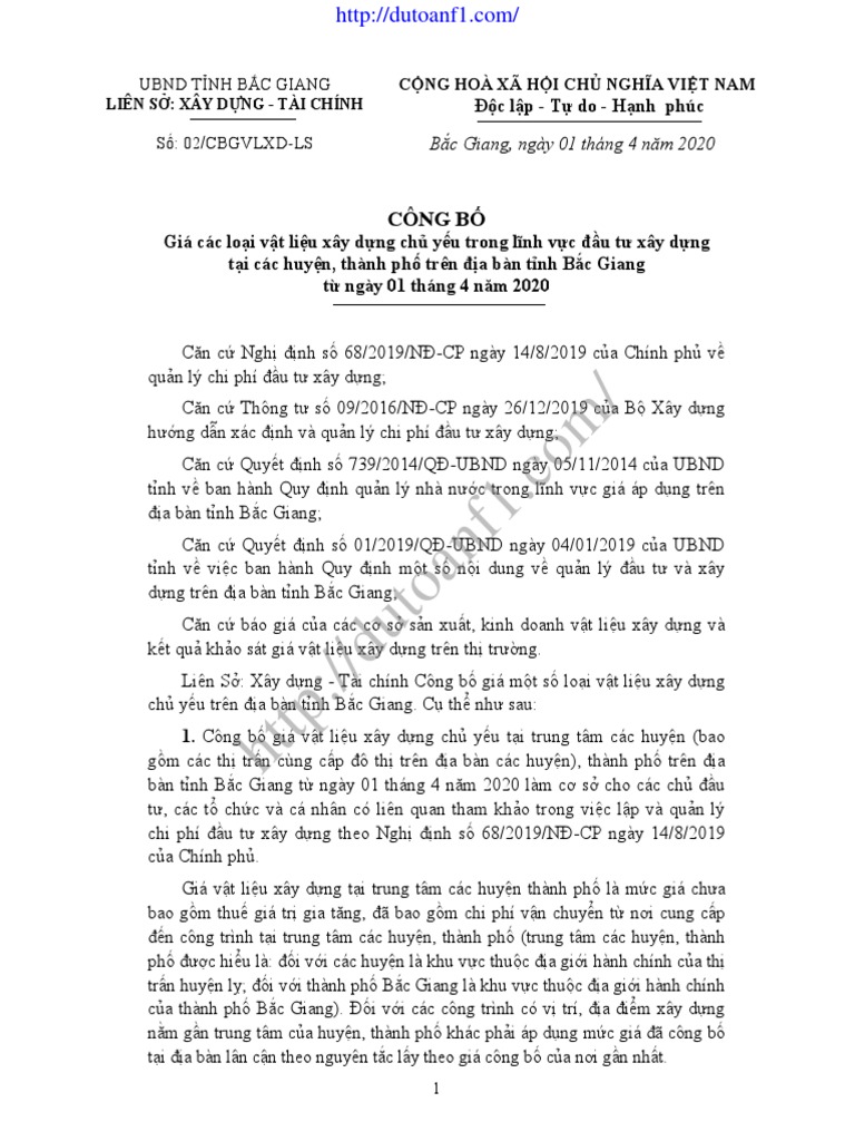 Công bố giá Bắc Giang là một phần quan trọng trong việc quản lý và phát triển xây dựng trên địa bàn tỉnh. Gần đây, Liên Sở Xây dựng – Tài chính đã cập nhật và công bố nhiều văn bản liên quan đến đơn giá xây dựng và giá vật liệu. Các thông tin này giúp các nhà đầu tư, doanh nghiệp và cá nhân có cái nhìn rõ ràng hơn về chi phí các loại vật liệu xây dựng và nhân công.