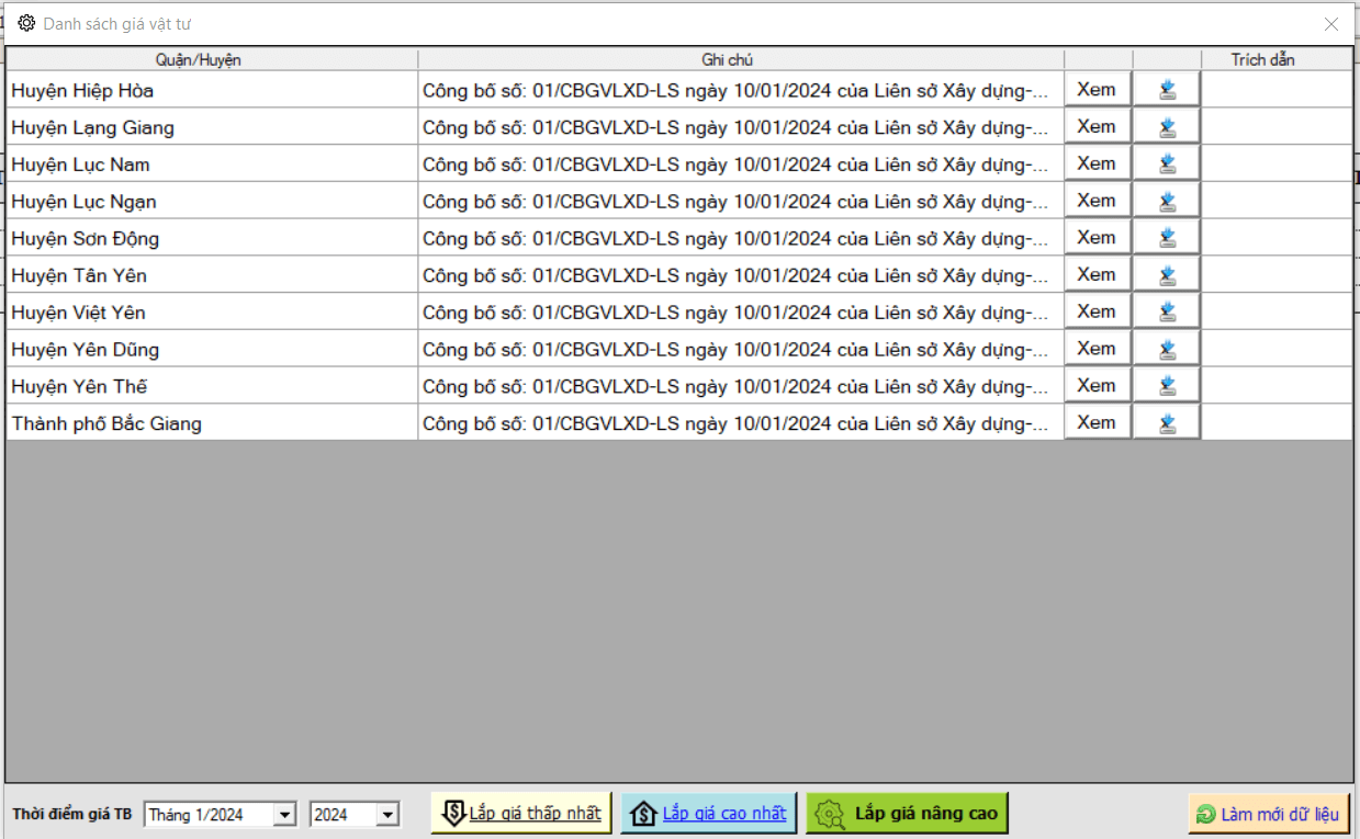 Ngoài ra, công tác tra cứu định mức xây lắp trực tuyến cũng được nâng cao, giúp việc tra cứu trở nên đơn giản và dễ dàng hơn. Các văn bản công bố từ tháng 1 đến tháng 12 trong năm 2024 và những cập nhật mới nhất sẽ là tài liệu tham khảo quý giá cho những ai đang hoạt động trong lĩnh vực xây dựng tại Bắc Giang.
