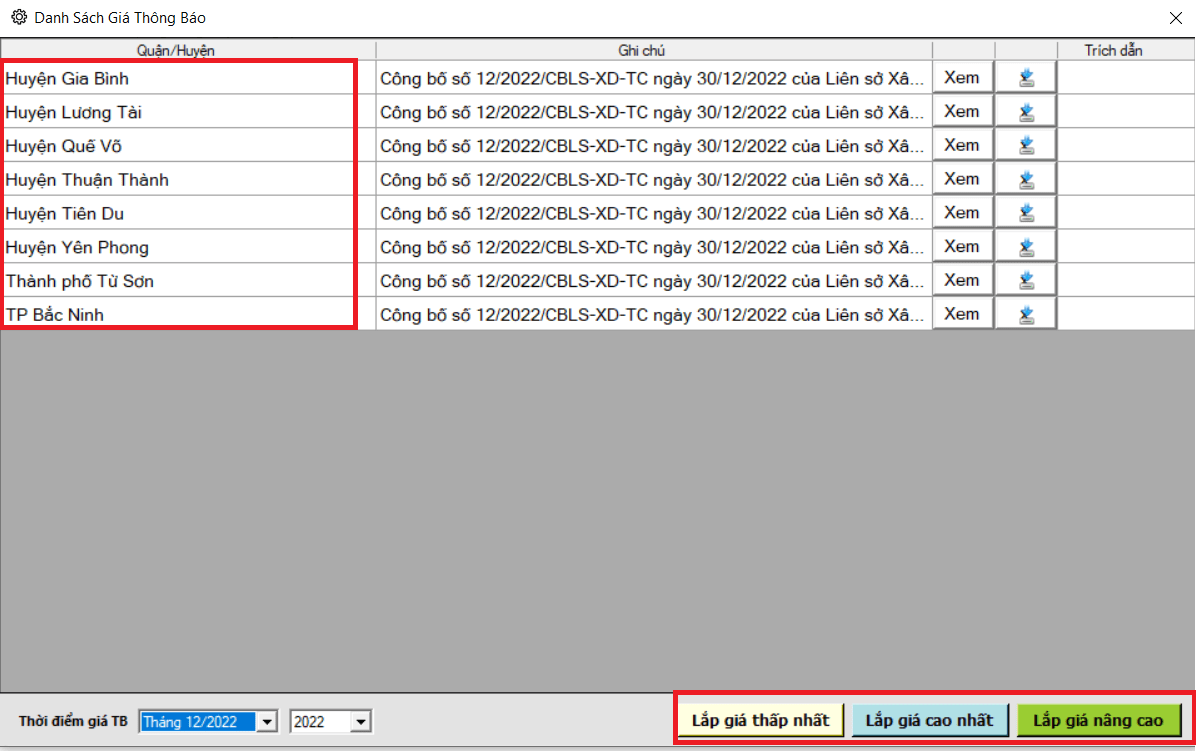 Ngoài ra, công bố cũng nêu rõ giá khu vực trung tâm thành phố Bắc Ninh và huyện lân cận, với bán kính tính toán cụ thể. Điều này sẽ hỗ trợ các công trình xây dựng diễn ra thuận lợi, nhất là trong bối cảnh thị trường xây dựng đang có nhiều biến động.