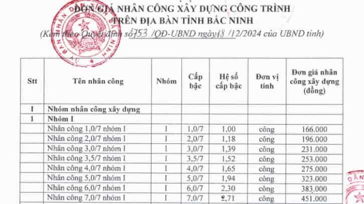 Đáng chú ý, giá vật liệu xây dựng được công bố là mức giá chưa bao gồm thuế giá trị gia tăng, điều này rất quan trọng để các nhà đầu tư có thể tính toán chính xác chi phí. Bên cạnh đó, Sở Xây dựng tỉnh Bắc Ninh cũng đã công bố đơn giá nhân công xây dựng, giúp các bên liên quan nắm bắt thông tin đầy đủ hơn về các khoản chi phí có thể phát sinh trong quá trình thi công.