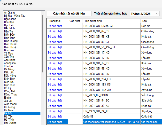 Ngày 01/10/2025, Sở Xây dựng Thành phố Hà Nội đã công bố thông tin rất quan trọng về giá các vật liệu xây dựng qua Công bố số 02.03/2025/CBGVL-SXD. Việc công bố không chỉ là cập nhật về giá cả, mà còn giúp cho các nhà thầu, doanh nghiệp xây dựng có cái nhìn tổng quát hơn về tình hình giá cả trên thị trường.
