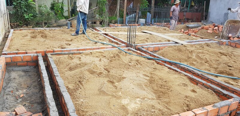Quy trình đổ đất vào móng nhà là một công đoạn vô cùng quan trọng trong xây dựng, bắt đầu từ bước khảo sát địa chất công trình. Điều này giúp xác định nền đất có đủ khả năng chịu lực hay không. Tiếp theo, thiết kế móng cũng cần được thực hiện dựa trên kết quả khảo sát để đảm bảo tính an toàn và bền vững cho công trình.