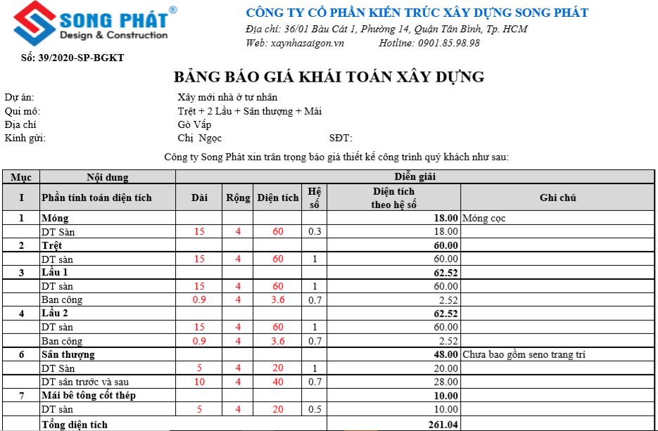 Dự trù kinh phí xây nhà là một bước quan trọng giúp chủ đầu tư nắm rõ tổng chi phí cần thiết cho quá trình xây dựng. Qua bảng dự trù, chủ đầu tư có thể hình dung được các khoản chi phí bắt buộc mà mình cần chuẩn bị. Ví dụ, nếu xây dựng phần thô cho 270m2, chi phí sẽ rơi vào khoảng 891 triệu đồng. Trong khi đó, nếu chọn xây nhà trọn gói, con số này lên tới 1.431 triệu đồng.