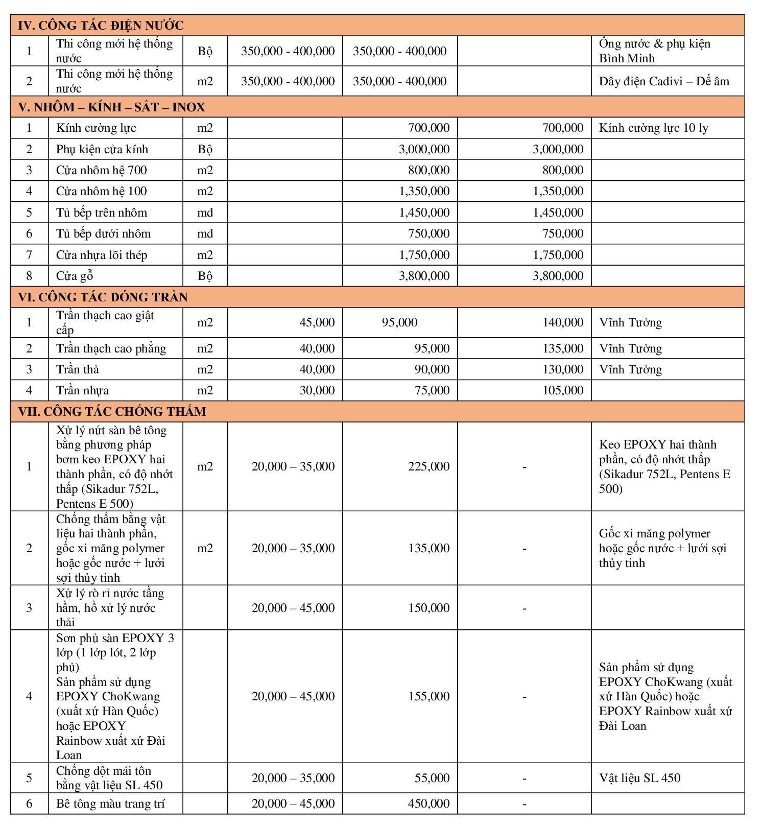 Năm 2024, chi phí xây dựng trung bình cho mỗi mét vuông sẽ biến động từ 6.000.000 đến 9.000.000 đồng, tùy thuộc vào khu vực và loại hình xây dựng. Điều này khiến bảng dự trù càng trở nên cần thiết để xác định chính xác từng khoản đầu tư cho từng giai đoạn của dự án, từ khâu chuẩn bị đến hoàn thiện.