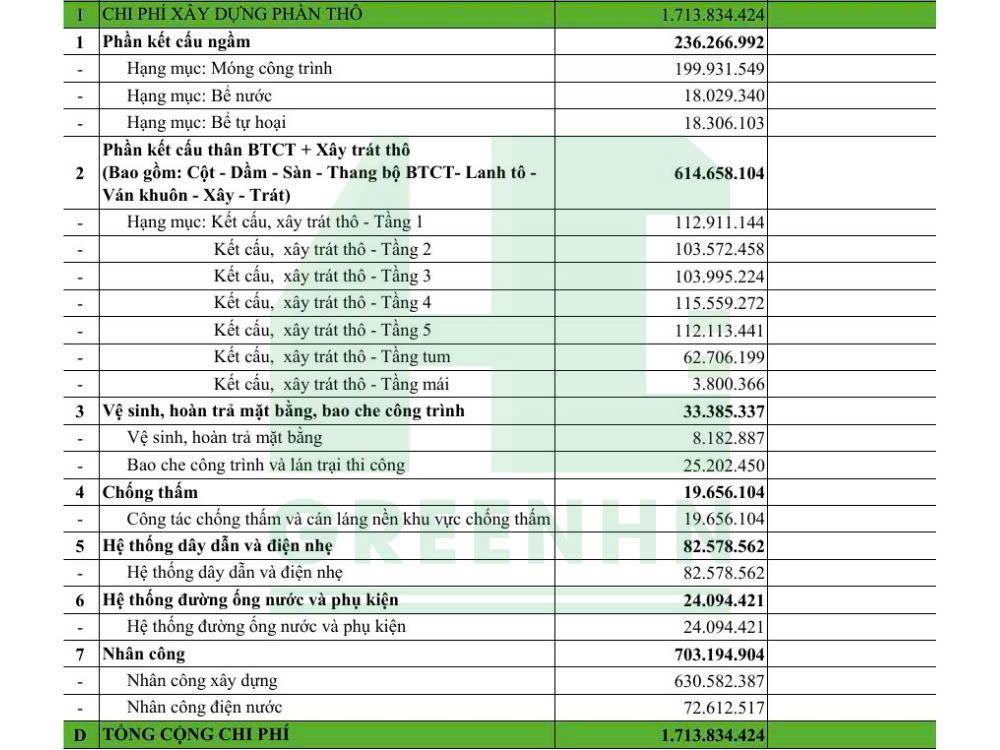 Bên cạnh đó, đừng quên dự trù khoảng 20-50% cho các chi phí phát sinh. Điều này sẽ giúp bạn tự tin hơn trong suốt quá trình xây dựng, tránh được những rắc rối tài chính ngoài ý muốn!