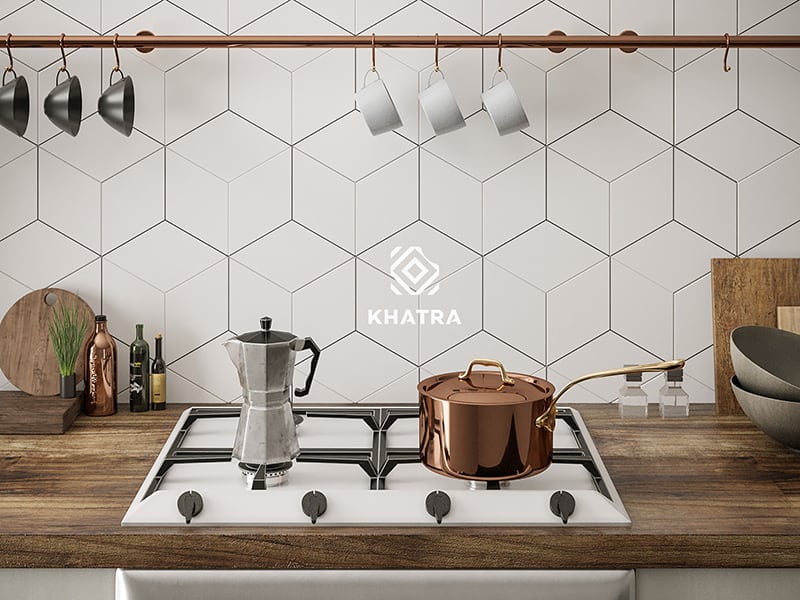Bên cạnh những mẫu gạch thẻ trang trí tường bếp với giá từ 200.000 đến 350.000 VNĐ/m2, các mẫu gạch lục giác cũng rất được ưa chuộng. Dễ dàng vệ sinh, bảo trì và mang lại không gian ấm cúng, gạch ốp tường từ Hoàng Mai chắc chắn sẽ là giải pháp lý tưởng cho căn bếp của bạn.