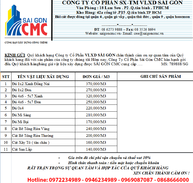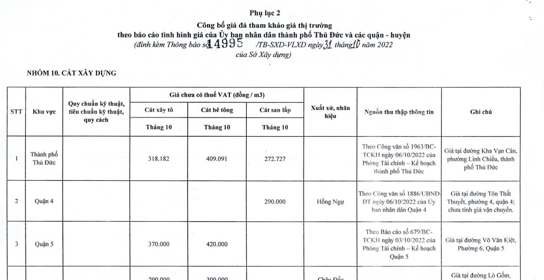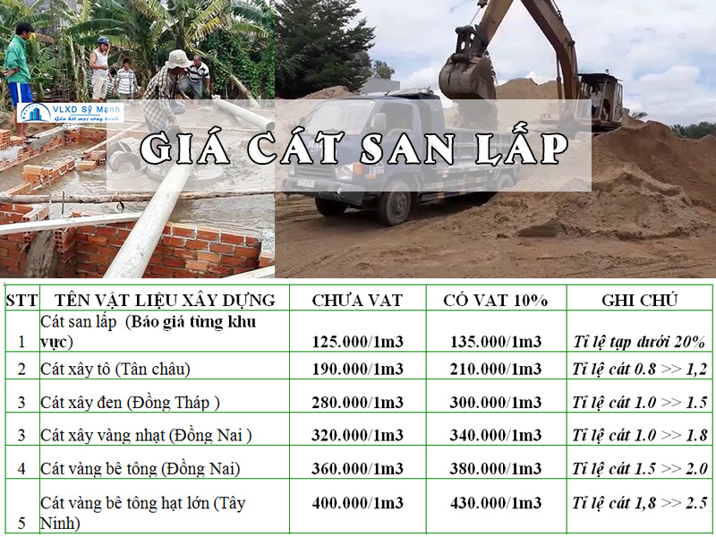 Hiện nay, báo giá cát xây dựng tại TP.HCM đang dao động từ 350.000 đến 480.000 đồng/m3, phụ thuộc vào loại cát mà bạn chọn. Cát bê tông có giá khoảng 350.000 đồng/m3, trong khi cát vàng thường cao hơn với giá từ 380.000 đến 410.000 đồng/m3. Riêng cát tô trát có giá từ 300.000 đến 330.000 đồng/m3, rất được ưa chuộng trong các công trình xây dựng.