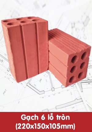 Kích thước tiêu chuẩn của gạch 6 lỗ là 210 x 140 x 95mm, với độ rỗng lớn giúp tăng khả năng cách nhiệt và cách âm. Do được nung ở nhiệt độ cao, gạch có độ bền cao và khả năng chịu lực khá tốt, mặc dù khả năng chống thấm không được đánh giá cao. Một điểm nổi bật khác là gạch 6 lỗ có giá thành thấp, phù hợp với những công trình cần tiết kiệm chi phí.