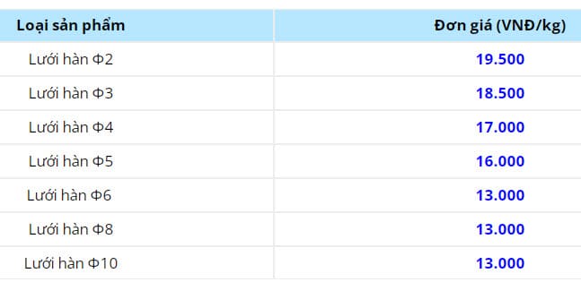 Nếu bạn đang tìm kiếm đơn giá lưới thép hàn, giá hiện tại cũng đã được cập nhật thường xuyên. Chỉ cần liên hệ trực tiếp với công ty để nhận tư vấn và báo giá hợp lý nhất. Hãy nhớ rằng giá đã bao gồm 10% VAT và miễn phí vận chuyển trong nội thành, giúp bạn tiết kiệm chi phí hiệu quả.