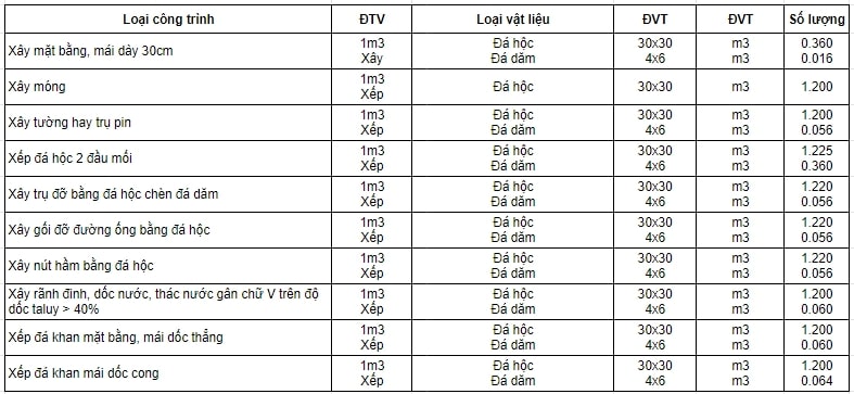 Bảng giá xây đá hộc chi tiết cập nhật mới nhất