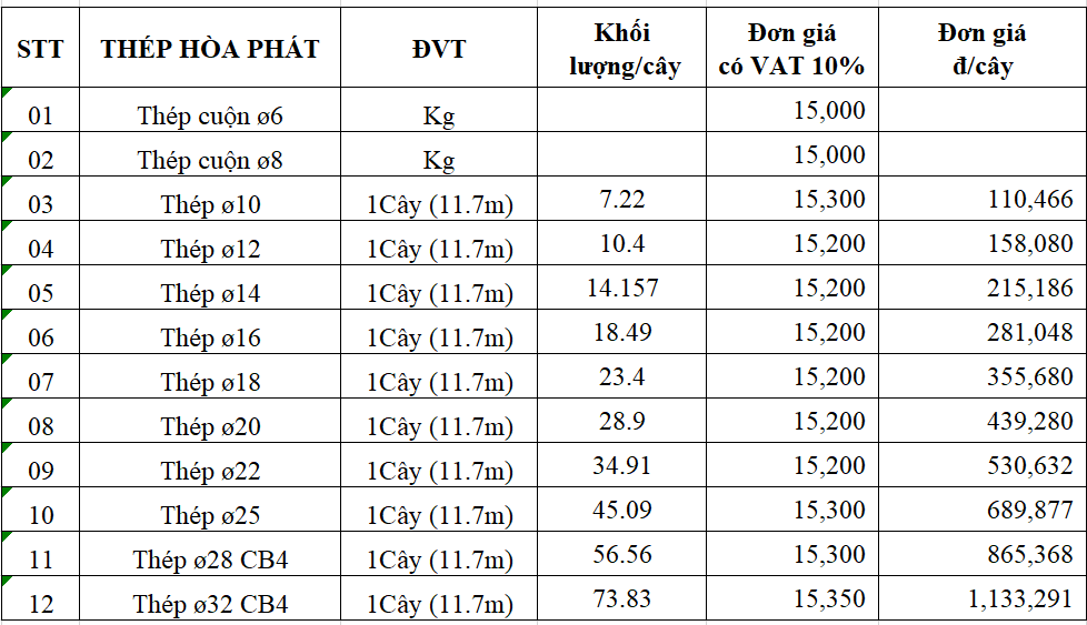 Riêng đối với thép Hòa Phát, giá cả dao động khoảng 15.200 đồng mỗi cây. Điều này cho thấy sự cạnh tranh giữa các thương hiệu, từ đó giúp người tiêu dùng có nhiều lựa chọn hơn trong việc mua sắm vật liệu xây dựng.