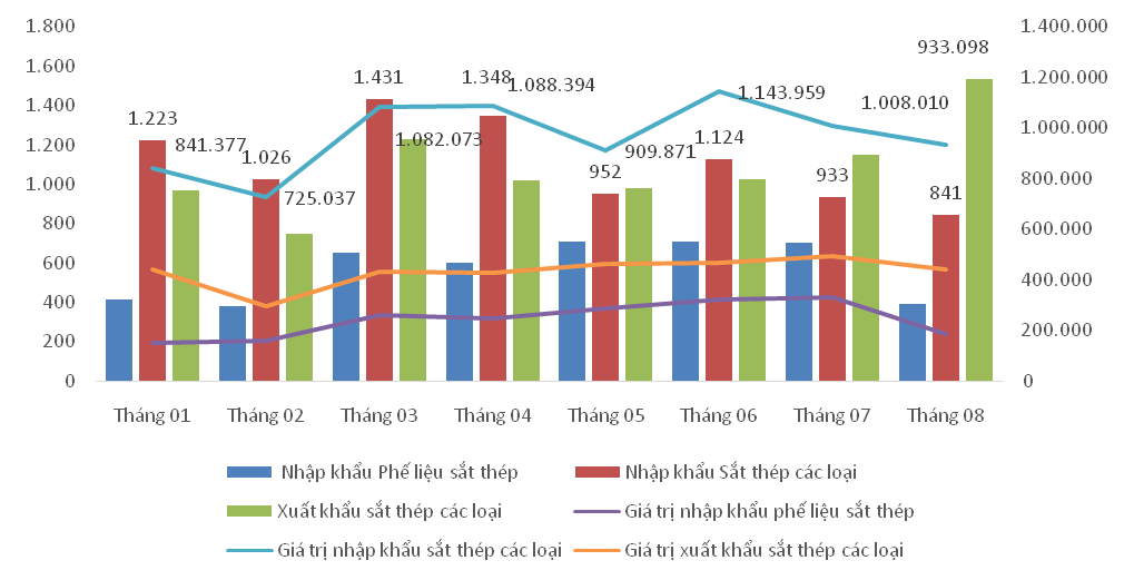 Trong tháng 8 năm 2021, sản lượng thép xây dựng tại Việt Nam đạt gần 714.000 tấn, giảm hơn 2% so với tháng trước và đáng chú ý là giảm 8,1% so với cùng kỳ năm 2020. Mặc dù tiêu thụ vẫn duy trì, nhưng rõ ràng đây là dấu hiệu cho thấy thị trường đang gặp khó khăn.