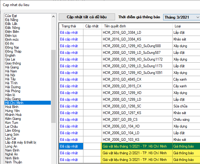 Giá vật liệu xây dựng trong năm 2021 ghi nhận nhiều biến động, đặc biệt là trong các quý đầu năm. Tại Thành phố Hồ Chí Minh, theo thông báo của Sở Xây dựng, giá vật liệu đã tăng từ 3% đến 6% so với cùng kỳ năm trước. Trong khi đó, Hà Tĩnh cũng công bố giá VLXD trong quý IV, với mức giá áp dụng tại các khu vực nội thành và thị trấn huyện.