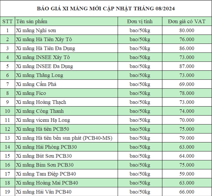 Bảng giá xi măng Vicem Hải Phòng là một trong những thông tin quan trọng mà người tiêu dùng cần biết trong thị trường xây dựng hiện nay. Hiện tại, giá xi măng Vicem dao động từ 72.000 đến 84.000 đồng cho mỗi bao 50kg. Mức giá này nằm trong mức hợp lý và cạnh tranh khi so sánh với các thương hiệu khác như xi măng Sông Gianh hay xi măng Kim Đỉnh.
