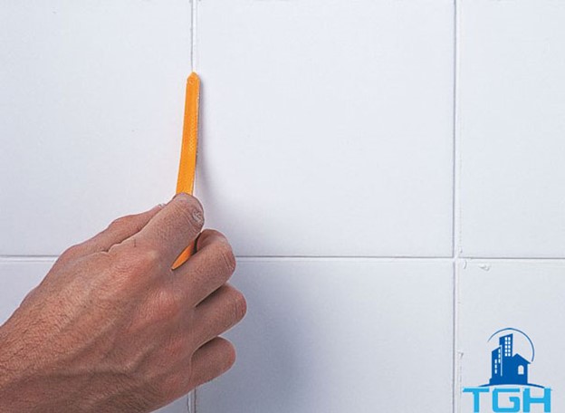 Tiếp theo, trước khi tiến hành chà ron, bạn cần làm sạch bề mặt và kẽ ron để đảm bảo keo bám dính tốt. Sử dụng vít cạo ron và máy hút bụi để loại bỏ bụi bẩn còn sót lại. Sau đó, dùng dụng cụ bay chà keo vào các khe ron. Chú ý giữ góc nghiêng khoảng 45 độ để keo lấp đầy một cách dễ dàng và chính xác.