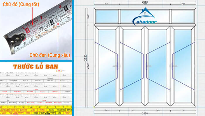 Kích thước cửa nhôm kính 4 cánh mở lùa là một yếu tố quan trọng không chỉ đảm bảo tính thẩm mỹ mà còn phải phù hợp với phong thủy. Khi đo kích thước, bạn nên sử dụng thước Lỗ Ban với các kích thước phổ biến như 52.2 cm, 42.9 cm hay 38.8 cm để đạt được kết quả chuẩn xác nhất.