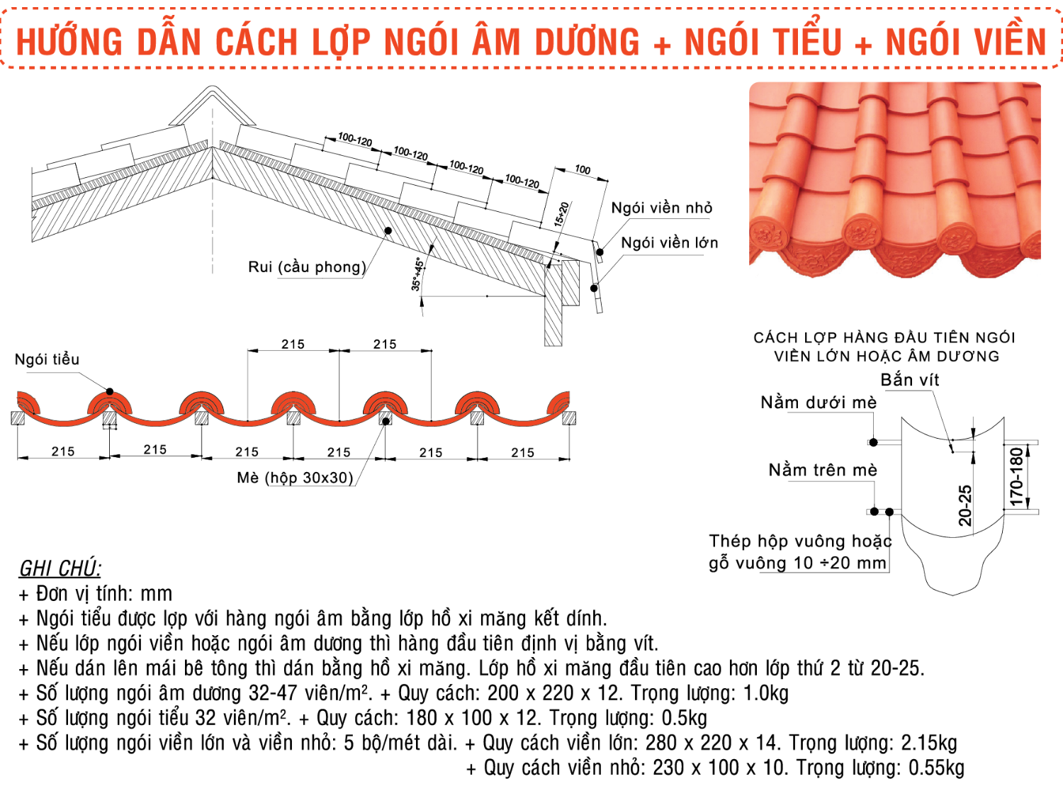 Cuối cùng, nhớ tham khảo bảng kích thước ngói âm dương chuẩn 2025 để chọn loại ngói phù hợp nhất với kiến trúc công trình của bạn. Việc tính toán chính xác và lựa chọn đúng sẽ giúp mái nhà của bạn không chỉ đẹp mà còn bền bỉ theo thời gian.