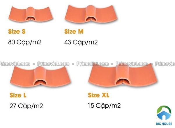 Đối với ngói âm dương, có ba kích cỡ chính: cỡ tiểu 170×140 mm, cỡ trung 200×220 mm và cỡ đại 280×240 mm. Với ngói cỡ M, mỗi 1m2 mái sẽ cần khoảng 43 cặp ngói. Khi bạn sử dụng ngói cỡ đại, số lượng cần có thể giảm xuống, do diện tích bề mặt lớn hơn.