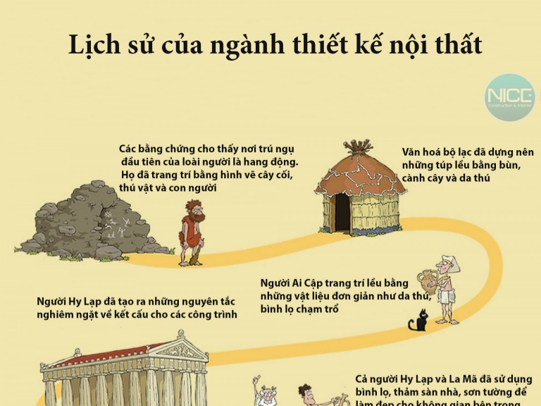 Quá trình phát triển thiết kế nội thất gắn liền với sự thay đổi của văn hóa và xã hội qua các thời kỳ lịch sử. Từ thời kỳ đồ đá, con người đã biết sáng tạo không gian sống với các vật liệu tự nhiên, tạo ra những hình thức đơn giản nhưng đầy tính nghệ thuật. Đến thời kỳ Hy Lạp và La Mã cổ đại, thiết kế nội thất trở nên tinh xảo hơn, với sự kết hợp giữa nghệ thuật và triết học, phản ánh giá trị văn hóa của thời đại.