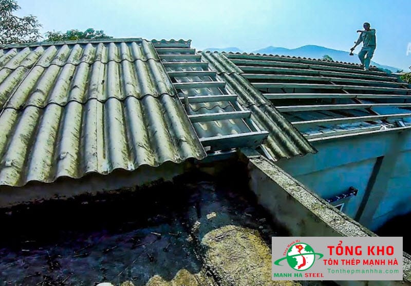 Việc thi công mái bờ rô xi măng hay còn gọi là tôn xi măng fibro, đòi hỏi sự tỉ mỉ và chính xác từ khâu chuẩn bị đến khi hoàn thiện. Trong quá trình lợp mái, việc xác định khoảng cách giữa các tấm lợp và xà gồ cùng độ nghiêng phù hợp là yếu tố cực kỳ quan trọng. Độ nghiêng hợp lý giúp nước mưa dễ dàng thoát đi, ngăn ngừa tình trạng thấm dột và hư hỏng.
