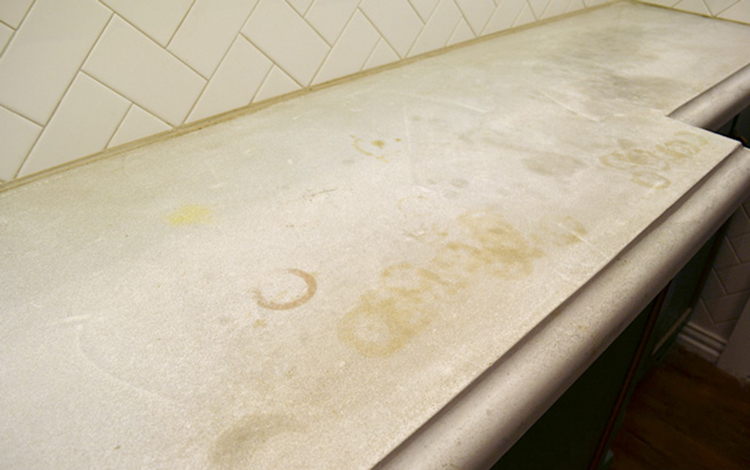 Mặt bếp đá trắng thường dễ bị ố vàng sau thời gian sử dụng, nhưng bạn hoàn toàn có thể khắc phục tình trạng này một cách đơn giản. Đầu tiên, hãy lau sạch bụi bẩn trên bề mặt đá bằng một khăn mềm. Sau đó, pha 3 muỗng cồn Rubbing Alcohol với 300ml nước và 1 muỗng nước rửa chén vào một chai xịt, lắc đều và xịt lên vùng cần làm sạch.