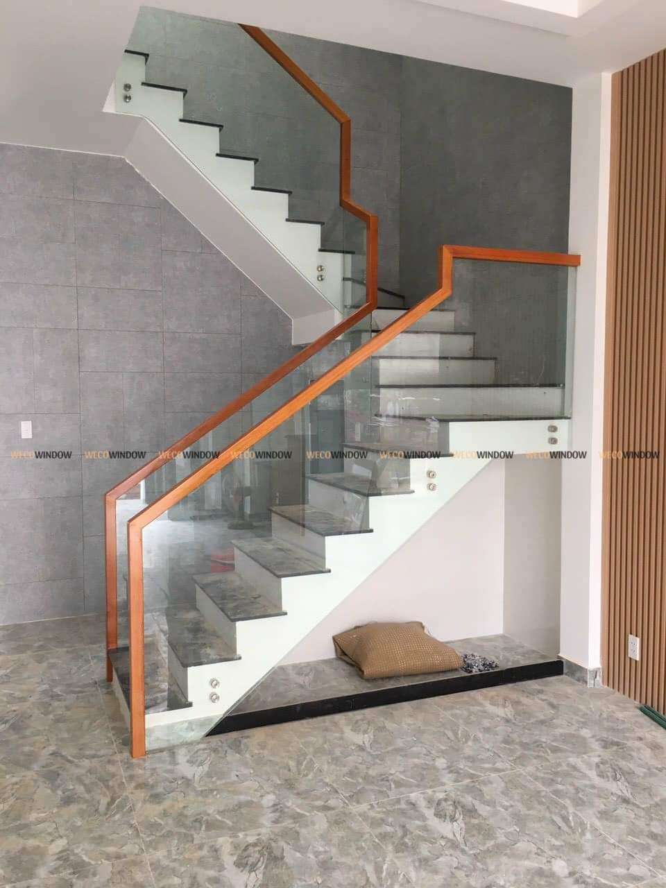 Mẫu cầu thang kính với tay vịn gỗ tự nhiên như gỗ căm xe hay gỗ sồi cũng rất được ưa chuộng. Tùy vào vật liệu và yêu cầu thiết kế, giá của các mẫu này có thể lên tới khoảng 1.500.000đ/m. Điều đặc biệt, cầu thang kính không chỉ sang trọng mà còn mang lại cảm giác an toàn khi di chuyển.
